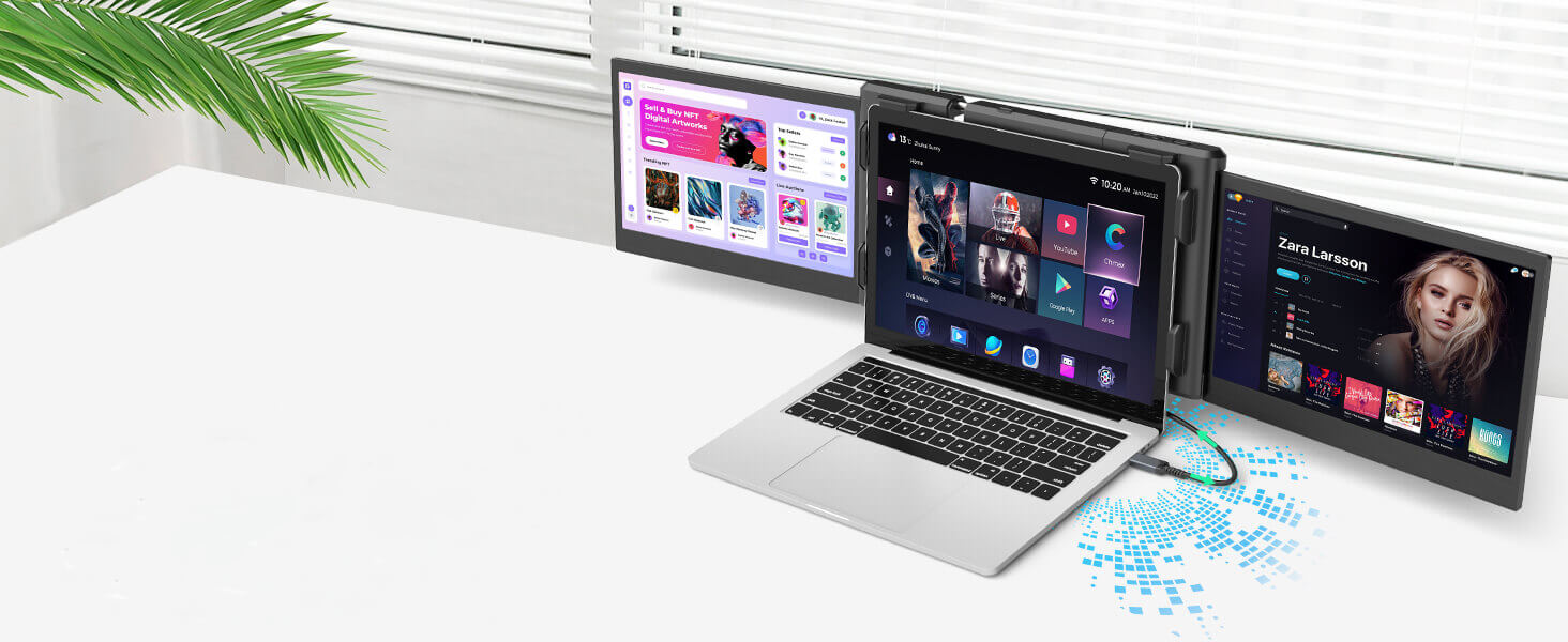 - Portable Monitor Workstation - With its remarkable 207° rotation angle, the triple screen extender offers you the liberty to customize your viewing experience according to your preferences. Effortlessly share your screen with clients or colleagues, improving collaboration. The handy carrying case makes transporting the portable laptop screen extender a breeze, wherever you go.